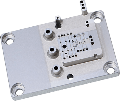 1.产品名称:滑动组顶块 2.材料:TEKAPEEK CMF 3.主要工艺:CNC 4.技术难点:小孔尺寸为φ0.31+0.02mm,相互孔位为±0.0075mm | 2.材料:SUS420 3.主要工艺:慢丝、火花 4.技术难点:慢丝火花加工处利边,深度及尺寸公差均为+0.01mm,相对位置±0.01mm | 1.产品名称:Holder转轴 2.材料:ZL101A,铝铸坯 3.主要工艺:铸造、数车、CNC 4.技术难点:铸坯材质均匀性,人工时效控制变形,两端精轴同轴度0.02mm |
